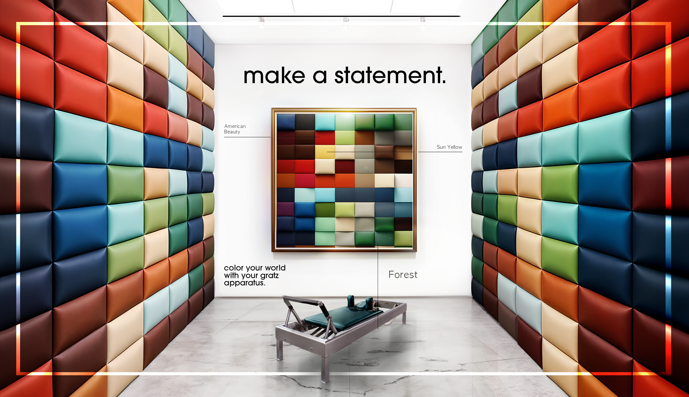 The "Colors in Action" project is a comprehensive and long-term series that aims to showcase the extensive range of high-quality upholstery options available for Pilates equipment. Through illustrating diverse color schemes applicable to both homes and studios, this initiative enables customers to envision the perfect fit for their business.